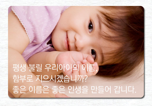 새 生命(생명)이 태어나면 父母(부모)들이 가장 신경쓰는 부분이 이름입니다.